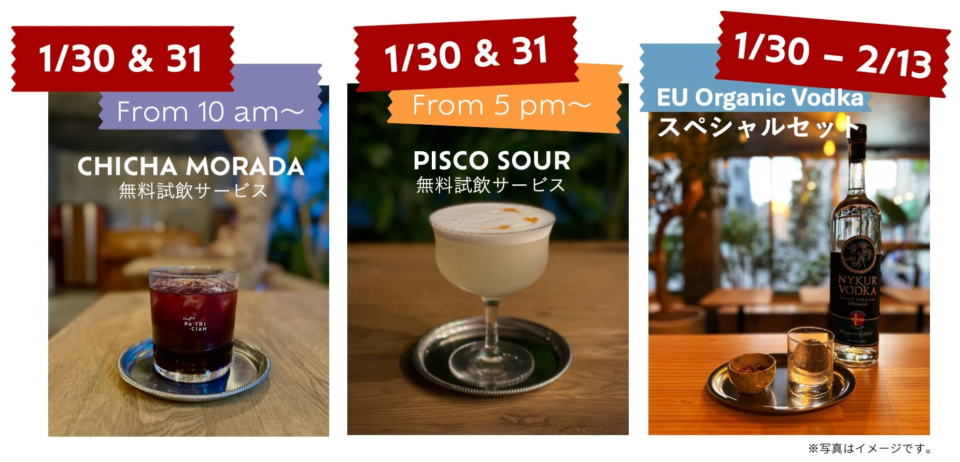 ※ご試飲は30ml程度(アルコール度数約20度)、お席の確保はご遠慮いただいています。各日数量限定(目安:30〜50名様)のため、お見逃しなく!年齢確認にご協力くださいね。