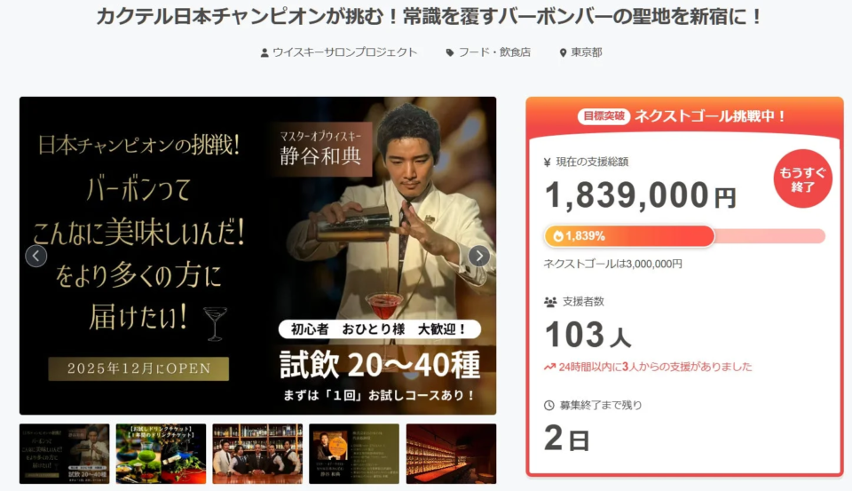 ネクストゴール達成により、さらに希少なアメリカンウイスキーの入荷や、ゲストバーテンダーによるイベント・セミナーが充実するなど、バーボンの魅力を伝える取り組みが強化されていく予定です。あなたの支援が、バーボン文化をさらに豊かにする一歩となるでしょう!